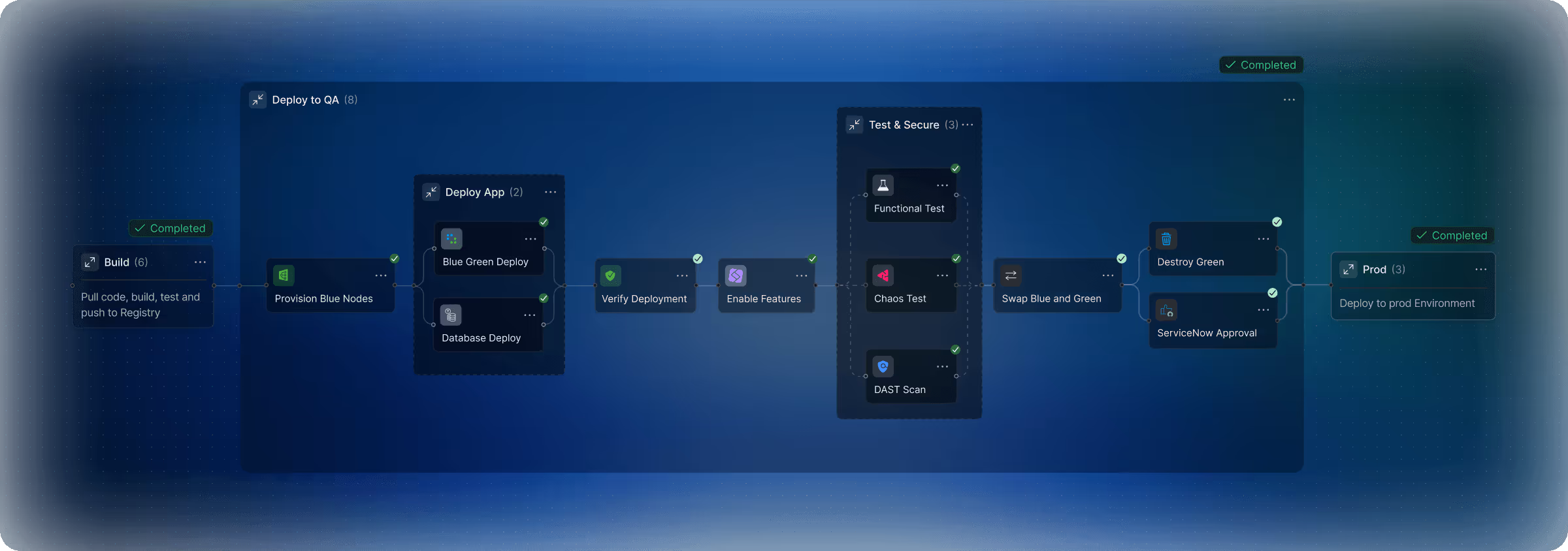 Harness provides elegant drag-and-drop and developer friendly as-code experiences. Toggle between them as you like.